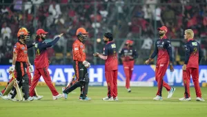 Bengaluru: Bengaluru, Mar 28 (PTI) Stand-in-captain Ishan Kishan smashed a blazing fifty as Sunrisers Hyderabad resisted Jacob Duffy’s excellent spell but only managed a slightly