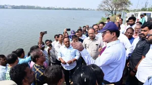 Hyderabad: Hyderabad Disaster Response and Asset Protection Agency (HYDRAA) Commissioner AV Ranganath visited the 120-acre Rayasamudram (Ramachandrapuram) tank in the Ramachandrapuram area of Sangareddy district and