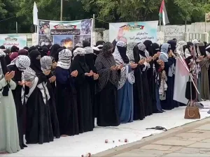 Hyderabad: Following the assassination of Hamas chief Ismail Haniyeh, ‘Qunoot-e-Nazila’ prayers were performed at Sayeedabad in the city on Sunday, August 4. The prayers were