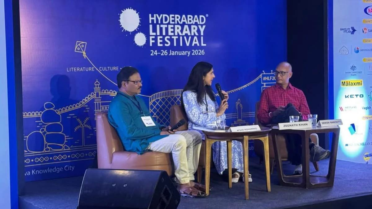 The panel discussion at the literary festival at the Sattva Knowledge City in Hyderabad’s Hitec City was moderated by journalist Serish Nanisetti.