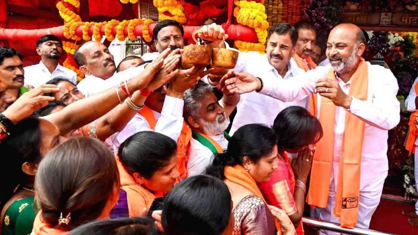 Speaking to the media persons after offering prayers at the Goddess Bhagya Lakshmi temple near Charminar, along with the newly-elected Bharatiya Janata Party (BJP) corporators from Karimnagar Municipal Corporation on Tuesday, February 24, 2026, Bandi Sanjay claimed that the ruling Congress and Bharat Rashtra Samithi (BRS) were “at the beck and call of All India Majlis-E-Ittehadul Muslimeen (AIMIM) without shame.”