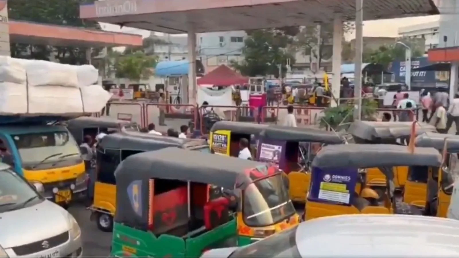 Hyderabad: A strike called by autorickshaw drivers due to the liquefied petroleum gas (LPG) shortage at an Indian Oil petrol pump near Sagar Highway in LB Nagar brought traffic to a standstill on Wednesday, April 1.