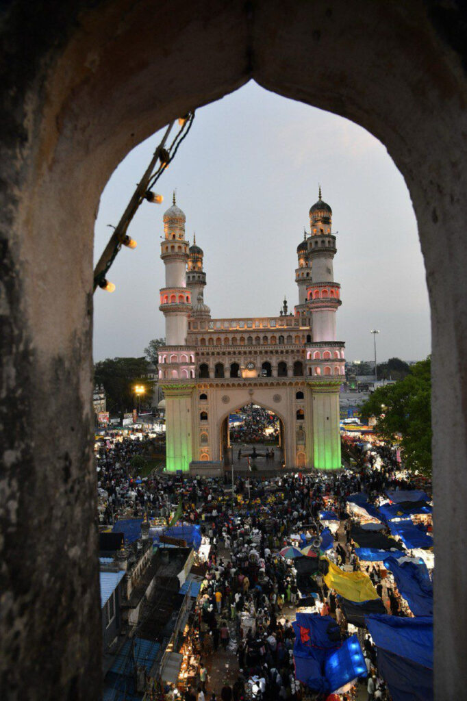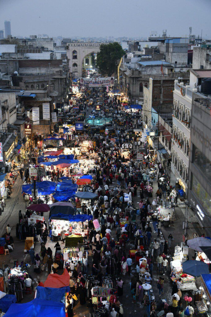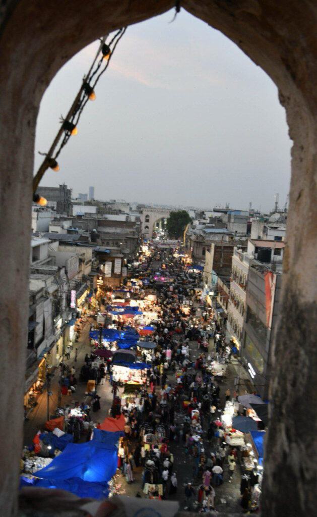 Hyderabad: The night bazaar around Hyderabad’s iconic Charminar is witnessing a bustling crowd as the month of Ramzan comes to an end and residents prepare for Eid al-Fitr.