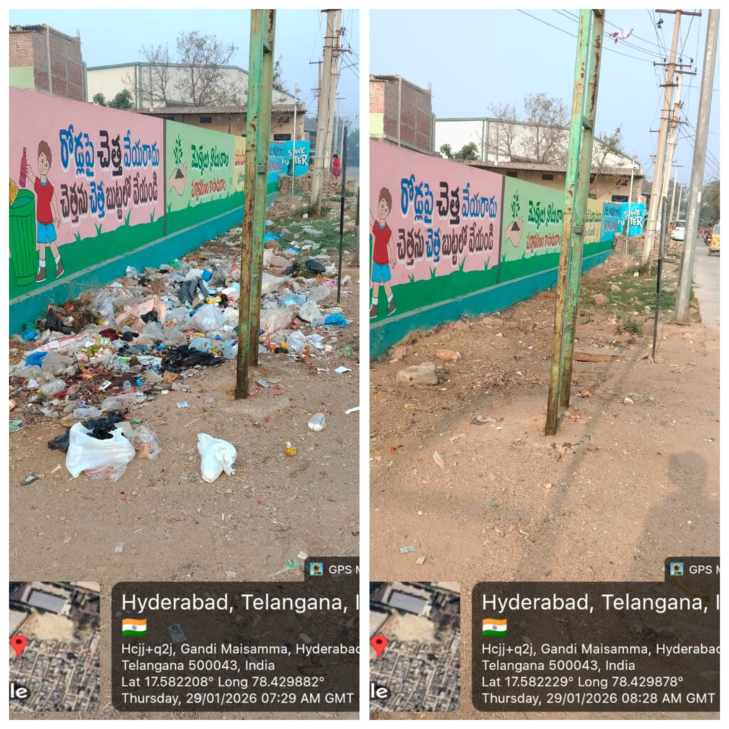 Additionally, 2567 metric tons of construction waste, and 88 metric tons of e-waste was also collected by the GHMC. The extensive electronic waste drive was conducted over the course of two days, collecting waste 47 tons from 271 locations on the first day and 41 tons from 260 locations on the second day.