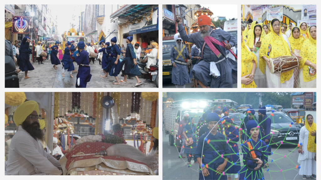 As part of the procession, Sikh youth performed with blunt weapons, Kirpans, and swords. Along the route, Kada Prasad, tea, and snacks were distributed, while an LED screen shared life teachings of Guru Nanak.