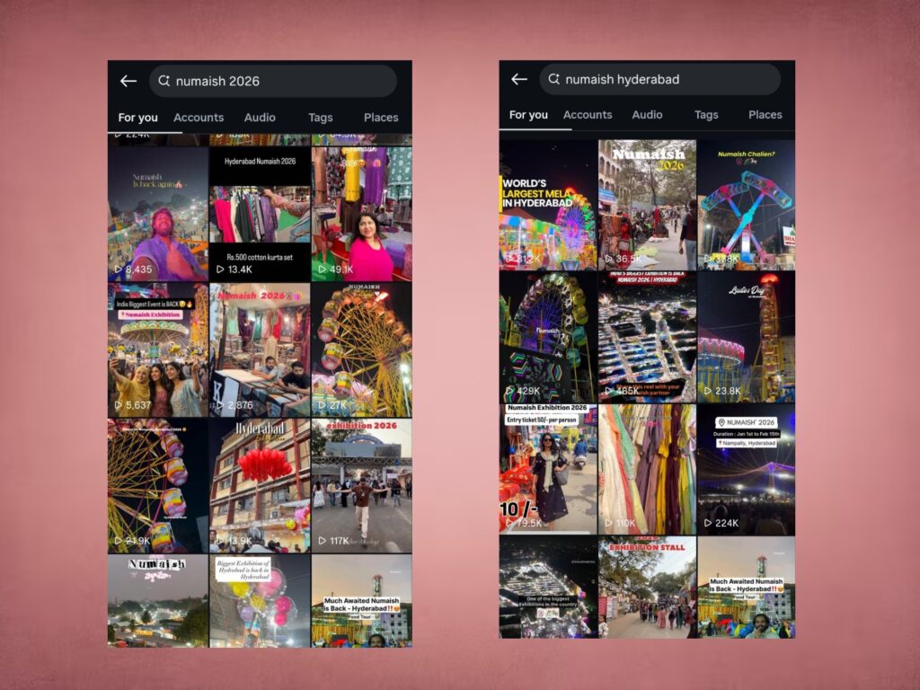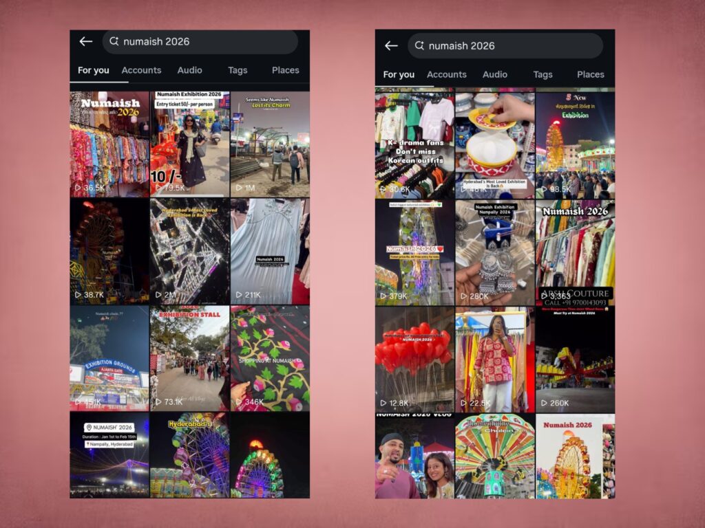 Several influencers and YouTubers have taken Numaish coverage to another level by turning it into episodic content. One day is dedicated entirely to Kashmiri stalls, another to Lucknowi products, followed by episodes focused on food, jewellery, footwear and even the rides. These daily uploads give potential visitors a complete preview — what to buy, where to eat, what to skip and how much to spend, long before they actually plan their visit.