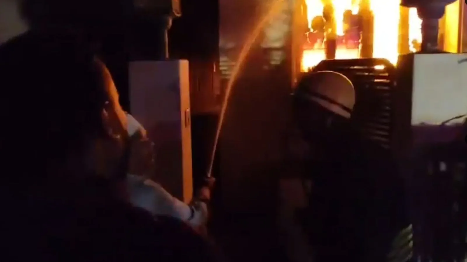 A video shared on social media showed residents exiting the house while firefighters put out the fire.