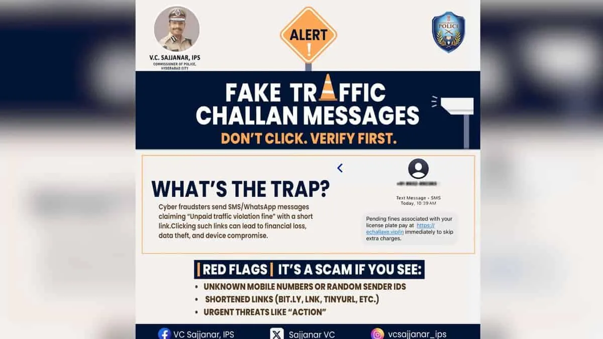 Hyderabad: A city resident lost Rs 6 lakh after paying a challan through a fake e-challan link, prompting the Hyderabad commissioner of police, VC Sajjanar, to issue a warning.
