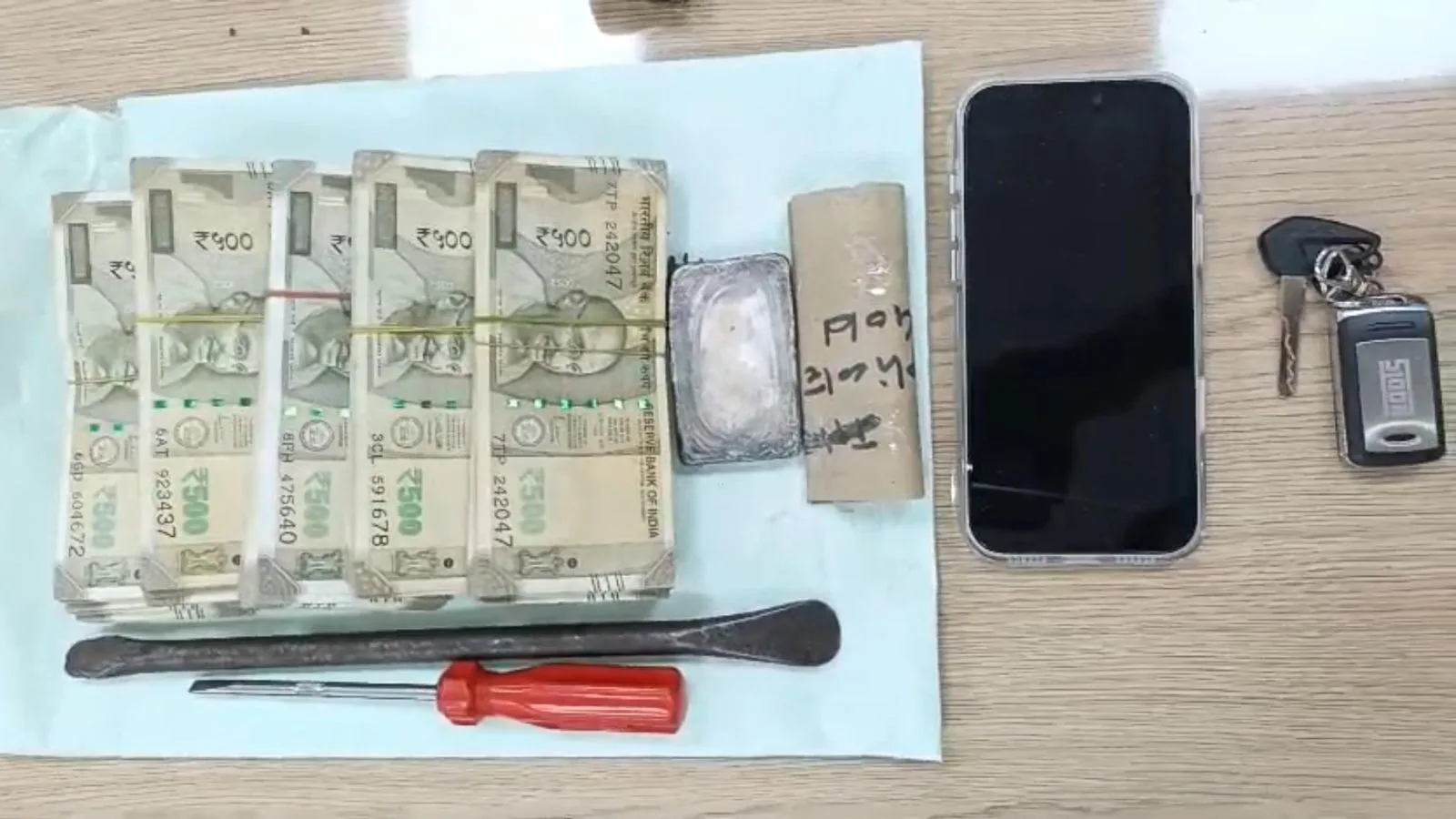 Police seized Rs 2.5 lakh in cash, 250 gram of silver, an Apple iPhone, and a Bajaj Pulsar motorcycle.