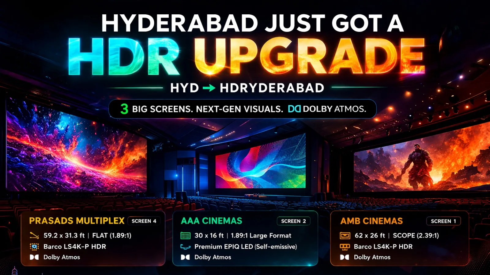 Hyderabad’s cinema experience is getting a premium upgrade, and fans are already calling it “HDRyderabad.” With multiple theatres introducing advanced HDR and LED technologies, the city is stepping into a new era of immersive movie watching.