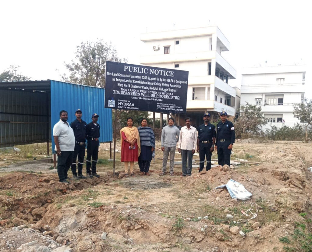 HYDRAA also put up boards in Ramakrishna Nagar Colony located in Nagaram village of Keesara mandal, Medchal-Malkajgiri district, indicating that 1365 yards of land there belonged to a Shiva temple.