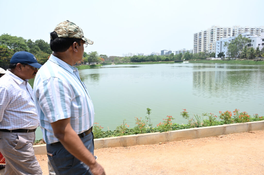 HYDRAA Commissioner AV Ranganath also visited the Ibrahim Bagh Lake in Rajendranagar on Thursday and inspected ongoing restoration works.