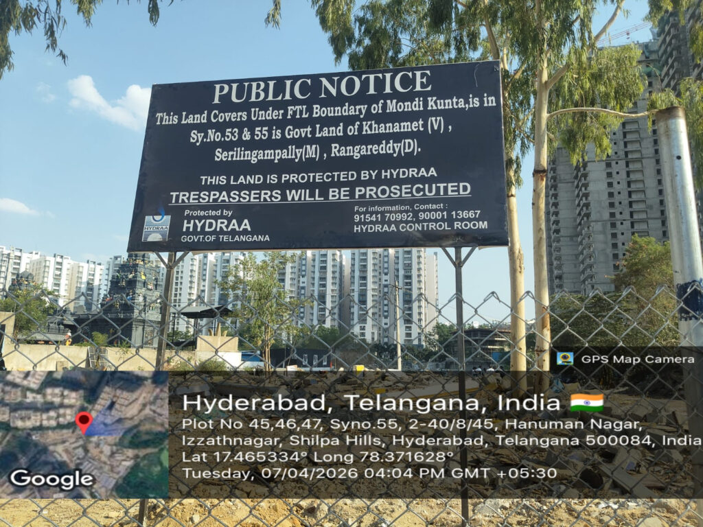In Survey no 55, located in Khanamet village of Serilingampally mandal of Rangareddy district, 4.20 acre of government land was under the control of major real estate companies, HYDRAA said.