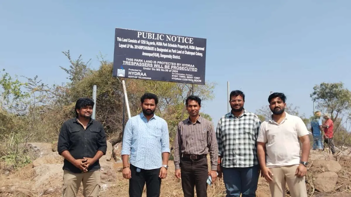Hyderabad: The Hyderabad Disaster Response and Assets Protection Agency (HYDRAA) reclaimed 1,200 square yards of a park worth Rs 7 crore in Ameenpur on Sunday, February 8.