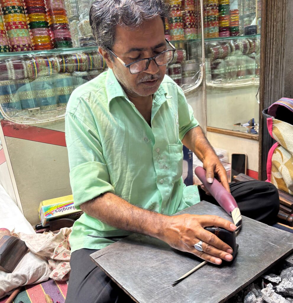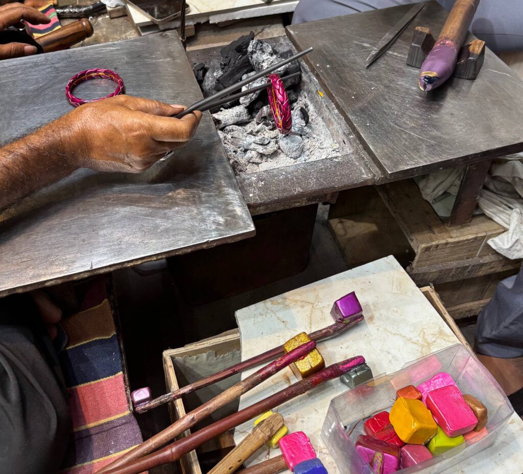 This newfound interest can largely be credited to social media. Over the past few months, Instagram has been flooded with reels showing Laad Bazaar’s artisans at work, twirling wooden rods over glowing flames and creating glittering bangles. What was once a craft practised behind the corners and hidden workshops has now become a visual experience, drawing tourists and influencers to capture the process.