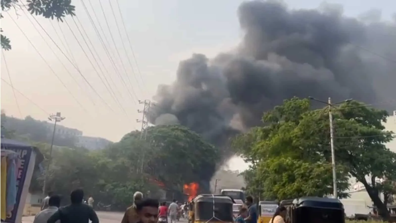 Thick smoke billowed and raging fire rose as locals tried to extinguish the blaze. On information, personnel from the nearest fire brigade and Greater Hyderabad Municipal Corporation (GHMC) reached the spot and are trying to bring it under control.