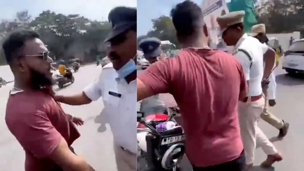 The incident occurred at Masab Tank on Tuesday afternoon when a bike rider was stopped by the traffic policeman identified as Venkatesh. In the video, the accused is heard saying,” Muh phodtey bolay aap, (You said, you’ll break my face, so come on do it).” The accused also questioned Venkatesh for puling out the bike keys.