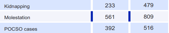 Other crimes such as dowry murder, kidnapping, molestation and Protection of Children from Sexual Offences Act (POCSO) cases have seen a considerable rise.