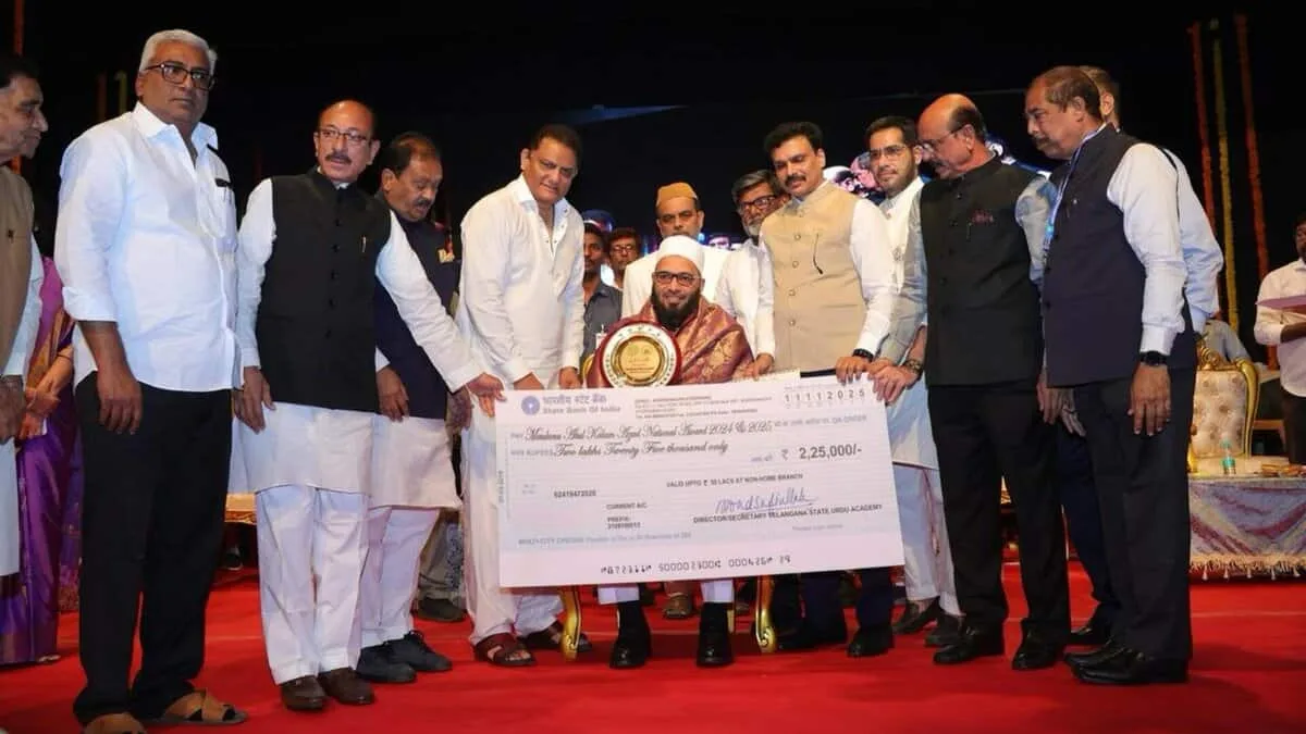 The award was presented by Mohammed Azharuddin, Minister for Minority Welfare, during a grand ceremony organized by the Telangana Urdu Academy at Ravindra Bharathi on the occasion of National Education Day.