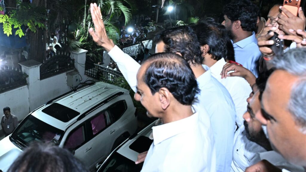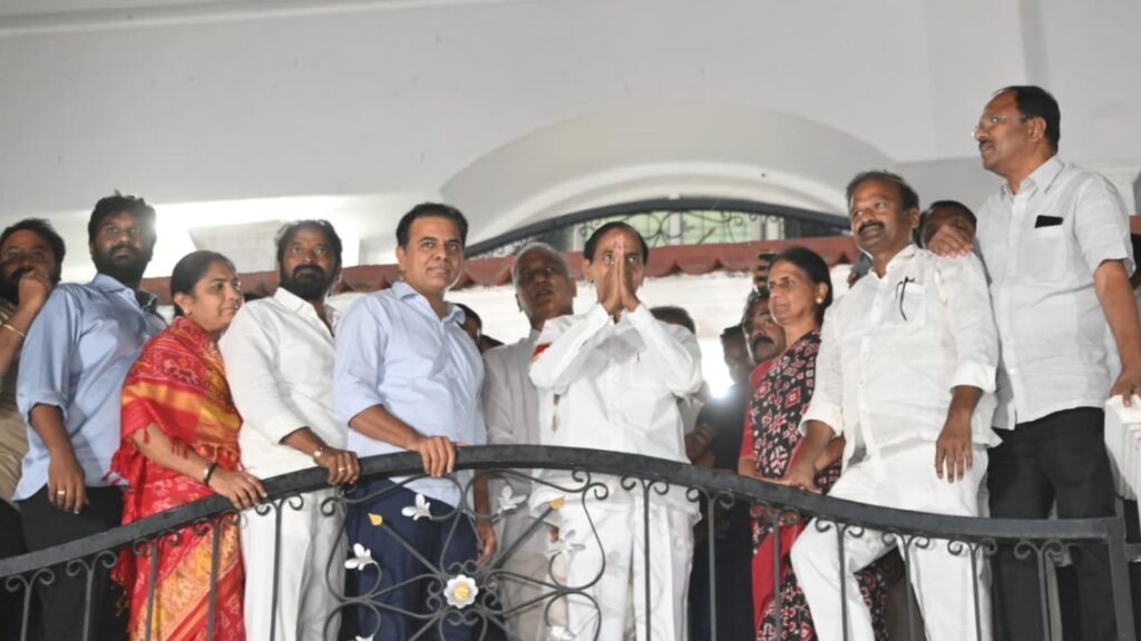 KCR’s son and BRS Working President KT Rama Rao (KTR) was also present at the residence along with T Harish Rao and RS Praveen Kumar, and others.