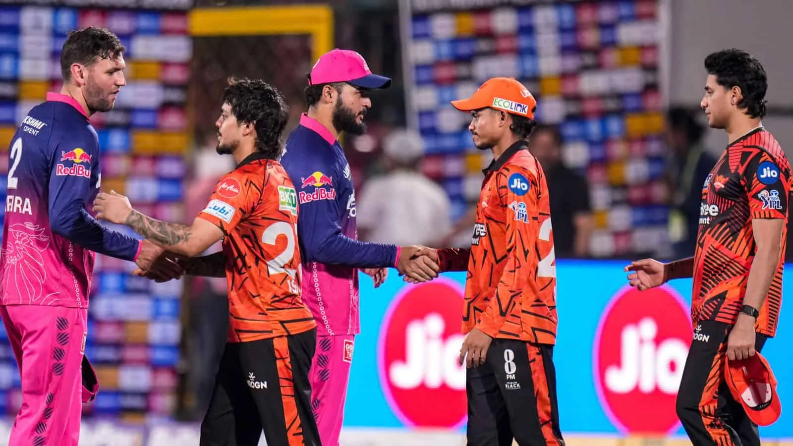 SRH had their regular skipper Pat Cummins returning with impressive numbers of 4-0-27-1 with his solitary wicket being that of his counterpart Riyan Parag (7).