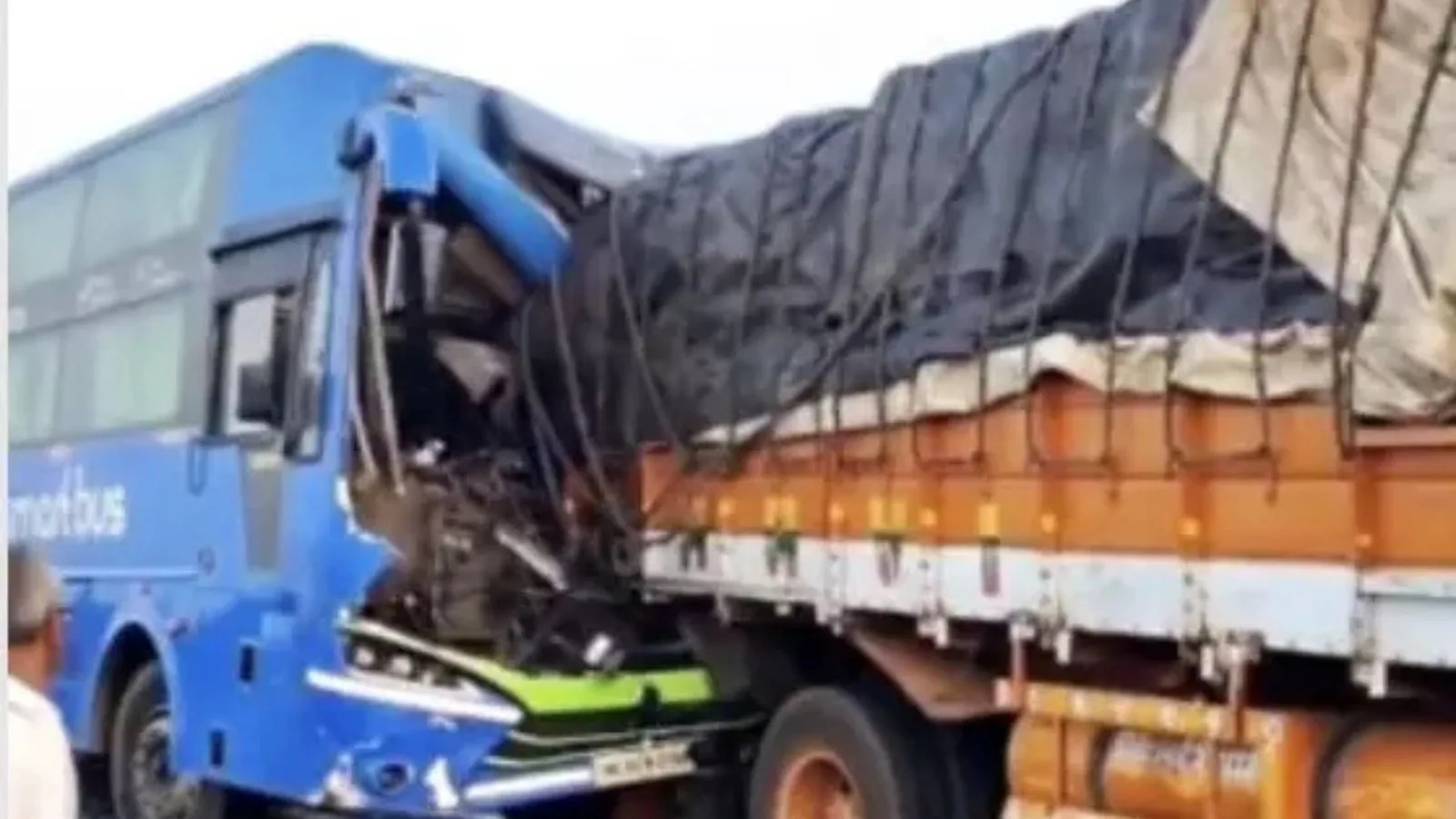 The accident occurred at 6 am when a bus carrying 36 passengers hit a lorry from behind at Kodad on National Highway 65. Following the accident, frightened passengers broke the windows of the bus to escape.