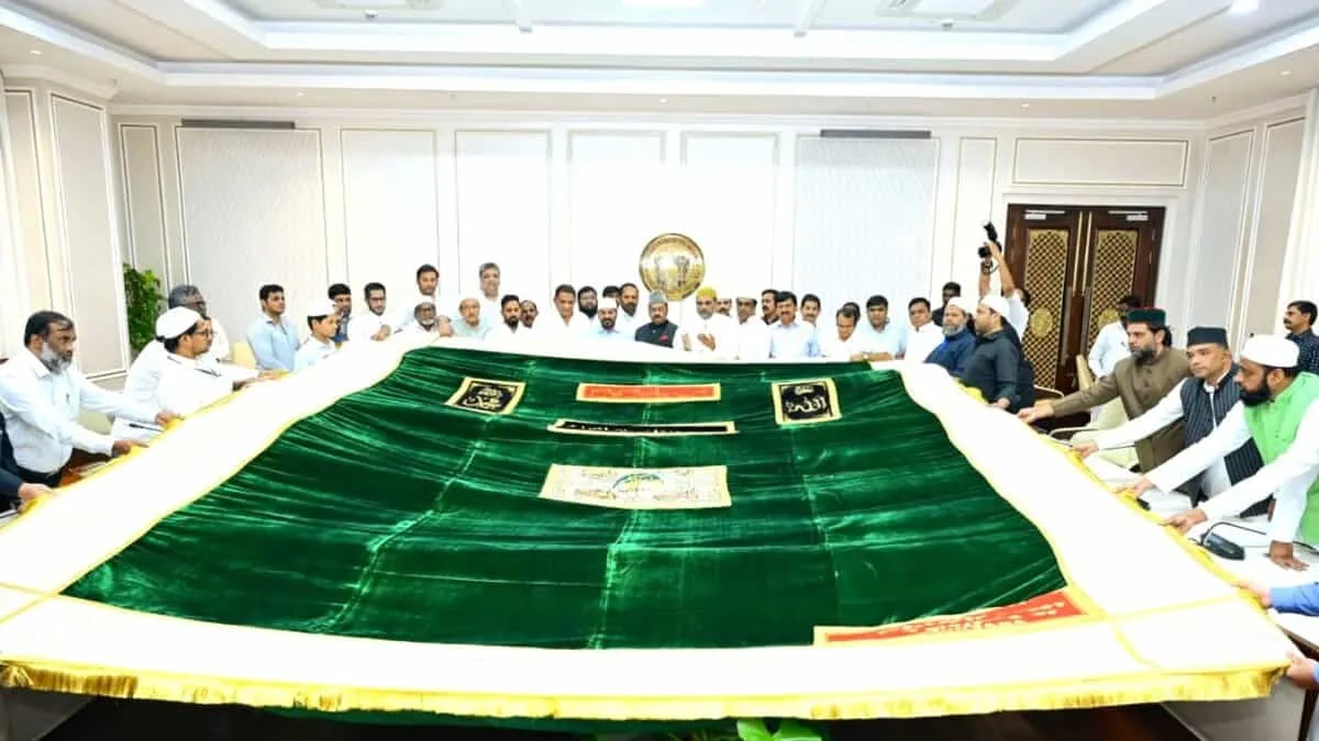 The chadar was presented at the Secretariat, in the presence of minority welfare minister Mohammed Azharuddin, minister of information and public relations Ponguleti Srinivasa Reddy, Telangana Haj Committee chairman Syed Afzal Qadri Pasha Biabani, Telangana Wakf Board chairman Hussain S, TMREIS vice chairman Faheem Qureshi, Telangana State Minority Finance Corporation (TSMFC) chairman Obaidullah Kotwal and other leaders. Senior Congress leaders Vem Narender Reddy and Mohd Ali Shabbir were also present.