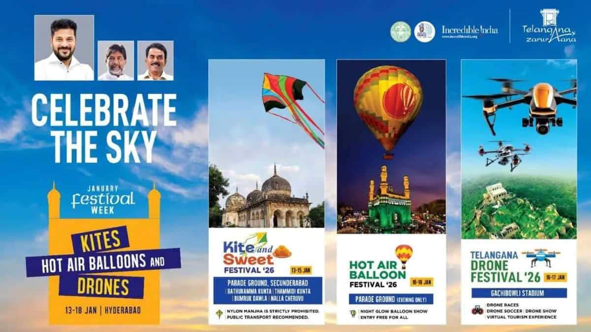 The festival is aimed at encouraging youth participation in emerging aviation technologies, creating awareness about drone applications in sports, defence, disaster management and industry. It also aims to position Telangana as a hub for drone innovation and aero-sports tourism.