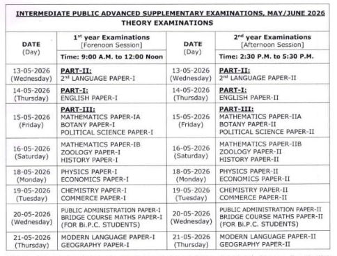 Hyderabad: Intermediate Public Advanced Supplementary Examinations for both first and second year students will start from May 13. Students intending to appear for these exams can pay the fees from April 13 to 20.