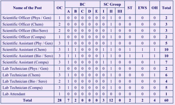 Application fees for scientific officers and scientific assistants are Rs 1,000 for SC, ST local candidates and Rs 2,000 for others. Fees for SC, ST local candidates applying for laboratory technicians are Rs 600 and Rs 1,200 for others, while fees for laboratory attendants are Rs 500 for locals and Rs 1,000 for others.