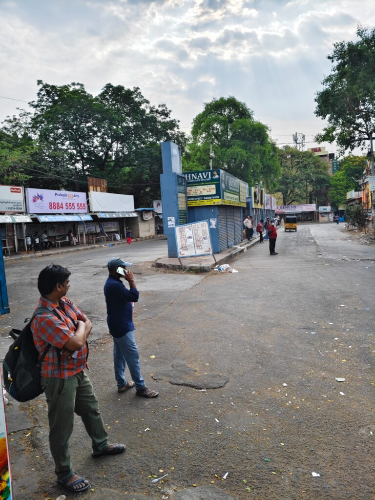 In Hyderabad, the usually busy Koti Women’s College bus stop wore a deserted look on Wednesday morning, reflecting the scale of disruption.