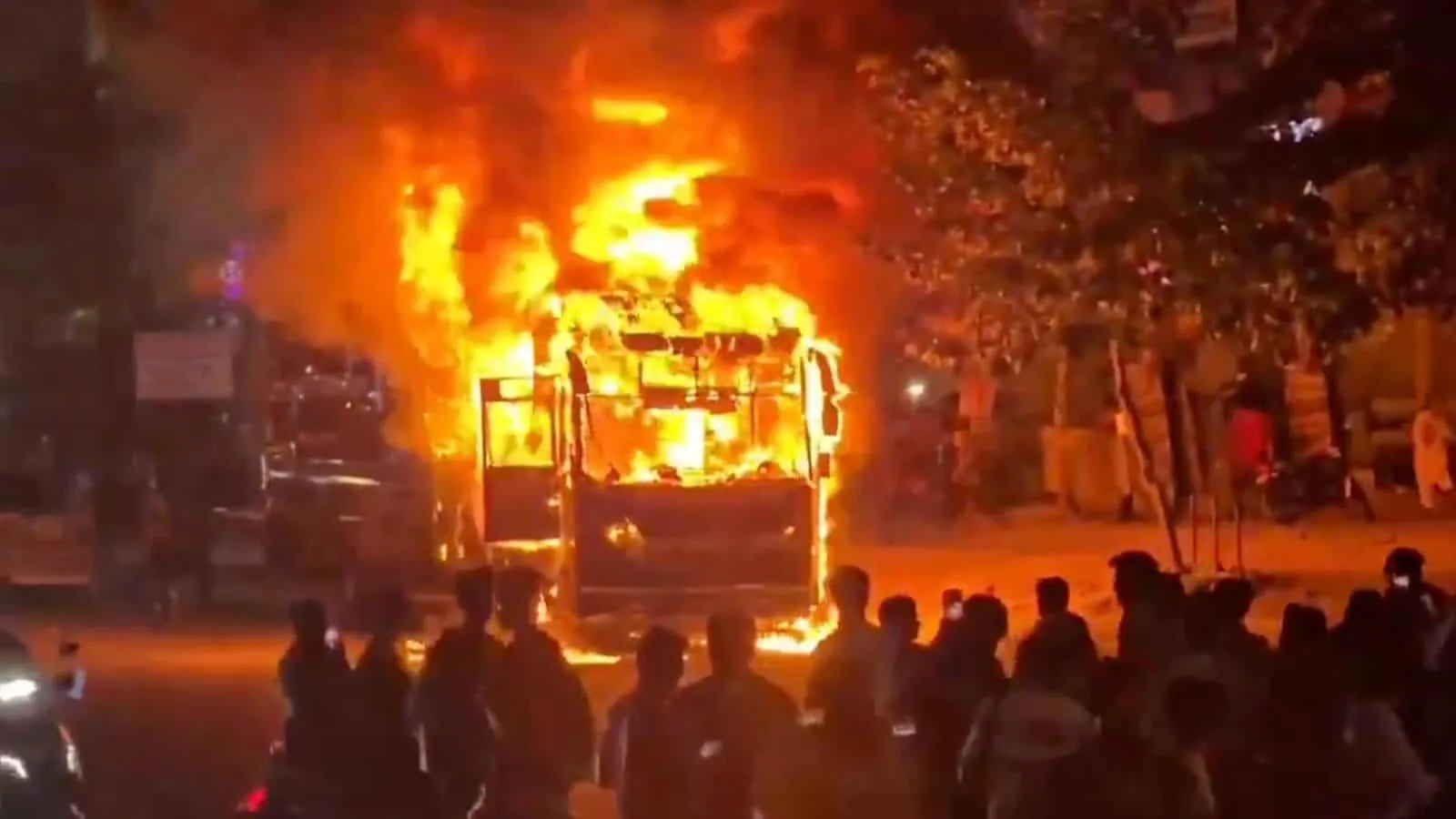Around 11 pm on Friday, as the bus approached the Padmavathi Plaza bus stop in KPHB, flames were reportedly spotted emerging from the driver’s cabin.