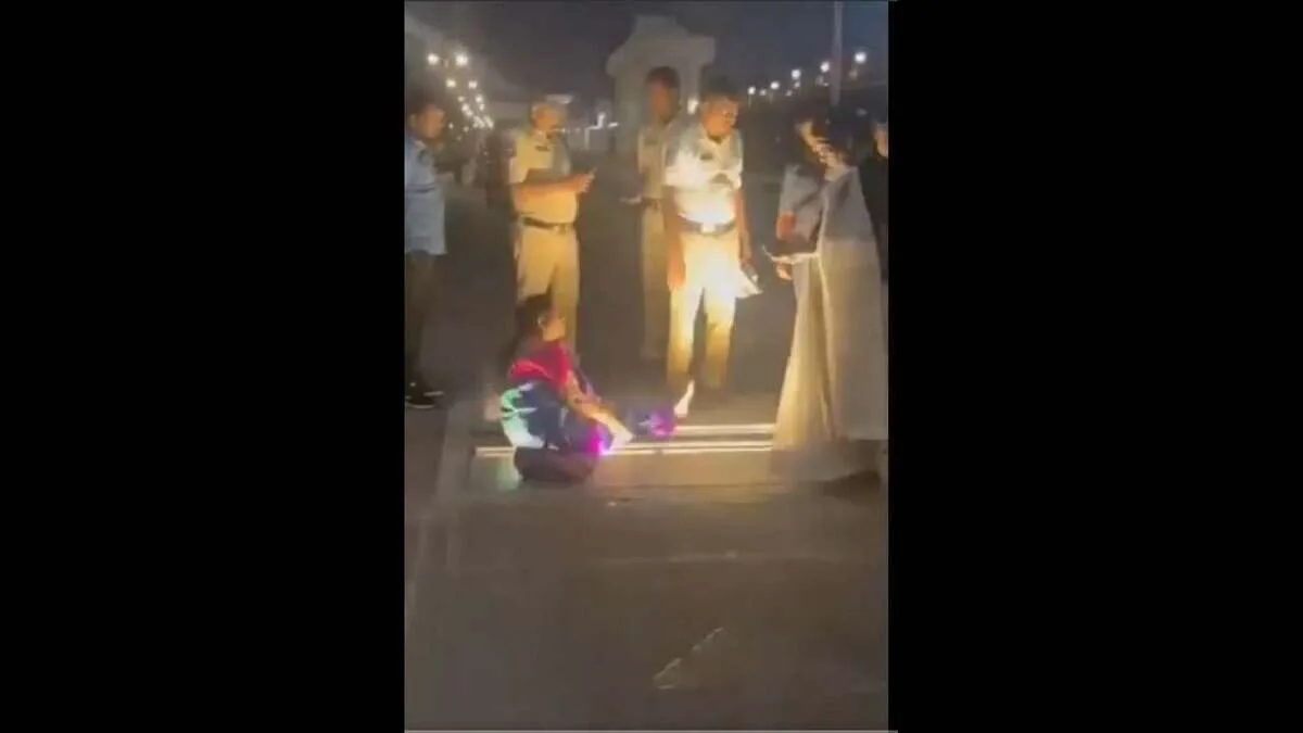 A video shared on social media shows the woman being helped by security officials after the incident.