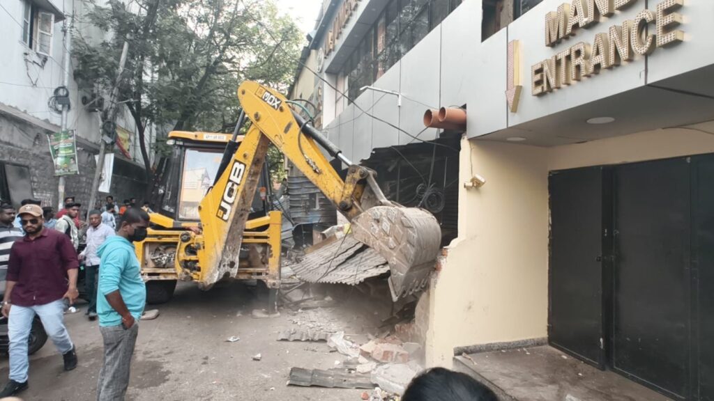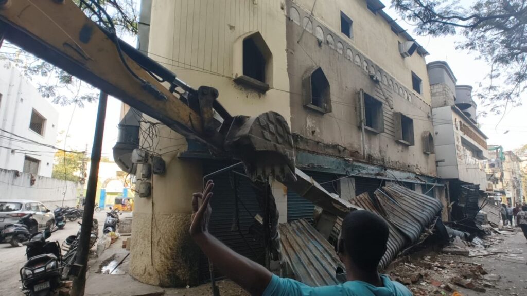 Hyderabad: Chaos erupted at New Mallepally, Hyderabad, during an anti-encroachment drive by the Greater Hyderabad Municipal Corporation (GHMC) on Monday, February 9, with residents alleging their shops were razed down without prior notice or intimation.