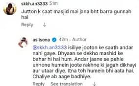 A troll accused her of committing a “sin” by wearing shoes inside the mosque, to which Sonakshi gave a calm yet sharp response. She wrote, “Isilye jooton ke saath andar nahi gaye. Dhyan se dekho, masjid ke bahar hi hai hum. Andar jaane se pehle unhone humein joote rakhne ki jagah dikhayi aur utaar diye. Itna toh humein bhi aata hai. Chaliye, ab aage badhiye.”