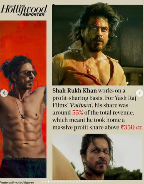 According to The Hollywood Reporter India, Shah Rukh Khan tops the list after earning over Rs 350 crore from his profit share in Pathaan, while Allu Arjun stands second with an estimated Rs 300 crore from Pushpa 2, including fees and profits.