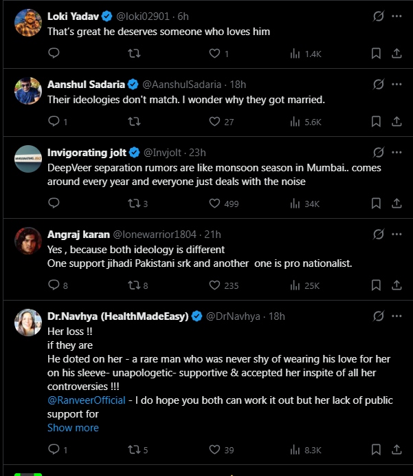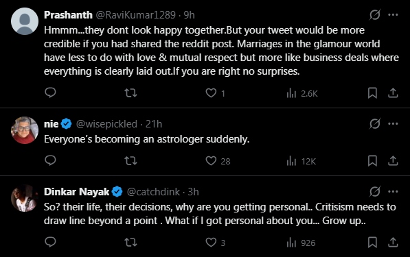 A third user shared, “Their ideologies don’t match. I wonder why they got married,” while another added, “Hope it’s just rumours. Either way, wishing them peace and privacy.”