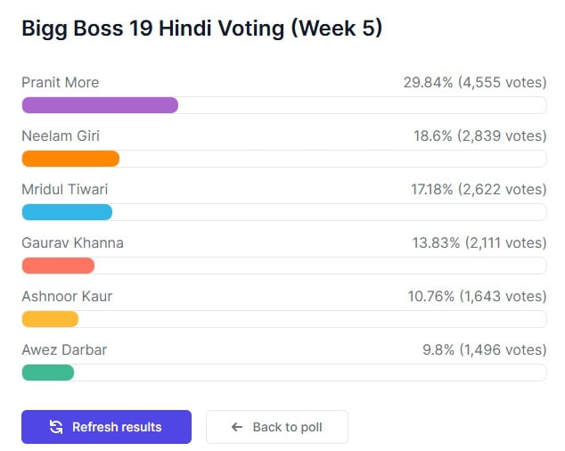 While there is no official confirmation yet, ongoing online voting trends paint a clearer picture. Currently, Awez Darbar is trailing with the least number of votes, while Pranit and other contestants continue to enjoy steady support from fans.