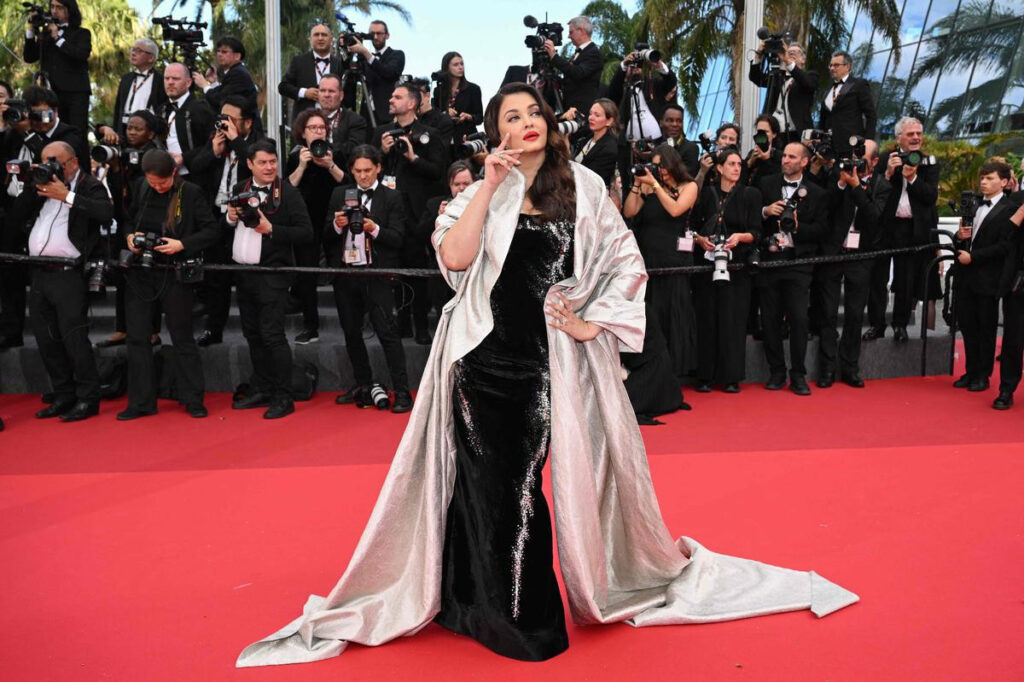 Aishwarya represented India at the Cannes Film Festival. She wore an ivory Banarasi handloom saree by Manish Malhotra, highlighting Indian weaving traditions and cultural elegance. Her Cannes appearances continue to be among the most talked-about globally.