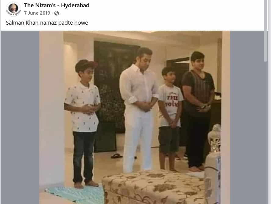 For clarity, here is an actual verified photo of Salman Khan offering Namaz with his family members, a completely different and genuine image.