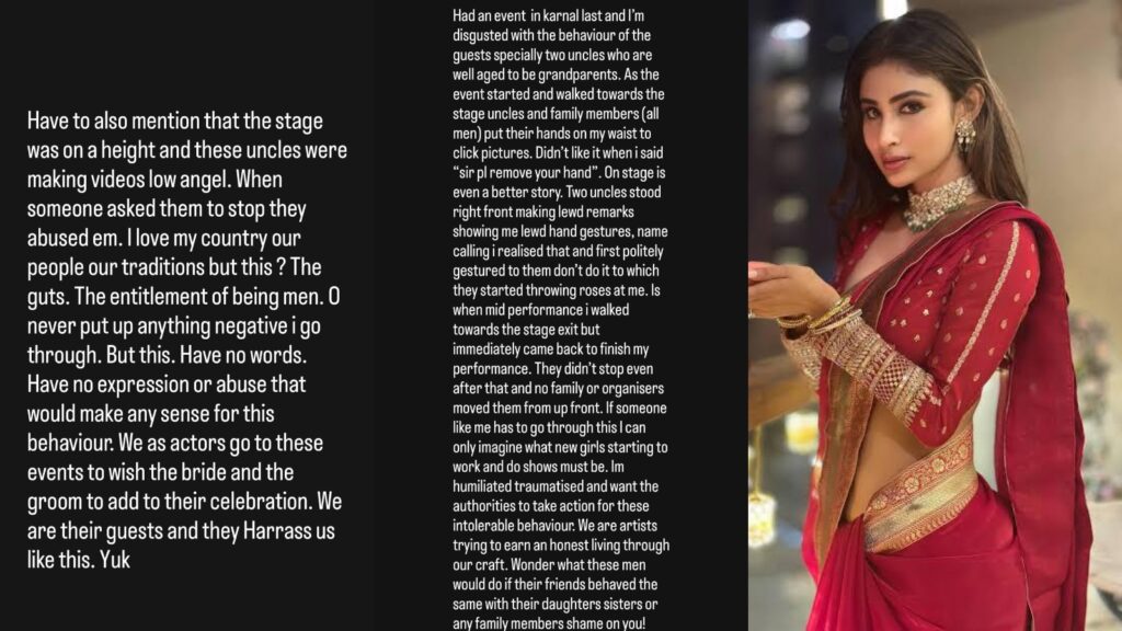 New Delhi: Actor Mouni Roy on Saturday shared a lengthy note on social media and alleged she was harassed by elderly men during a recent event in Haryana, an incident which left her humiliated and traumatised.