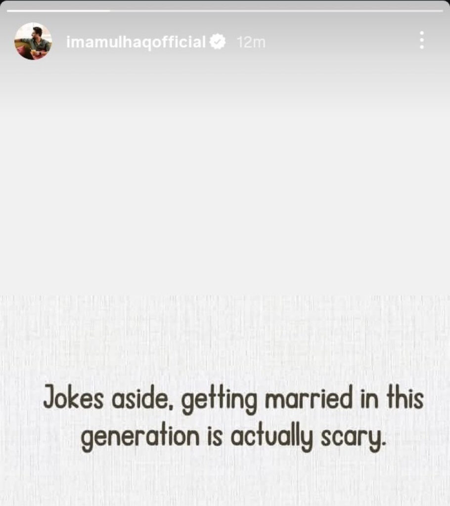 The latest buzz started when Imam posted, “Jokes aside, getting married in this generation is actually scary.” The statement quickly went viral, as he is already married to Anmol Mehmood. This led to speculation and rumors about possible issues in his marriage.