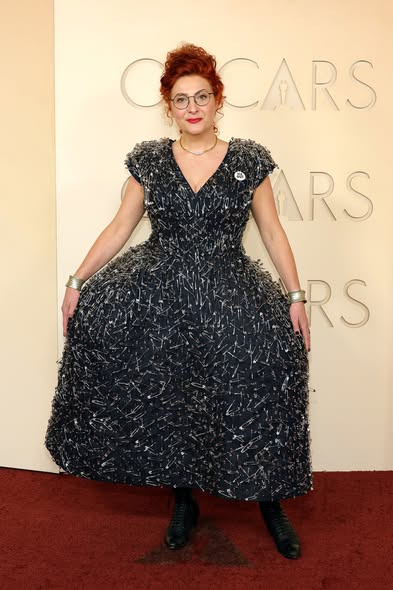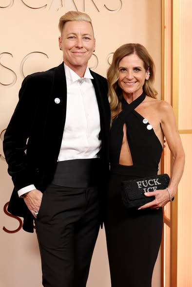 Polish-American costume designer Malgosia Turzanska, nominated for Hamnet, had an ‘ICE OUT’ pin on her dress, as did songwriter and singer Sara Bareilles and costume designer Malgosia Turzanska. Author and activist Glennon Doyle carried a handbag emblazoned with “F*** ICE” in beaded lettering.