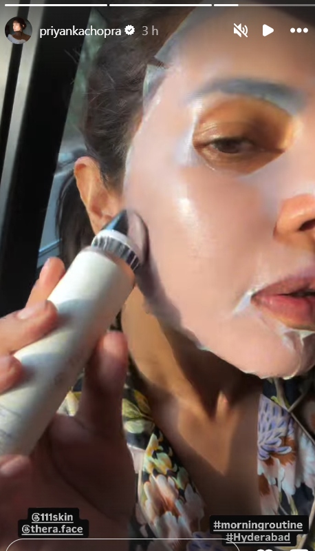 Priyanka took to Instagram stories, where she shared a video of herself where she is seen prepping her skin with a hydrating face mask and a wand.