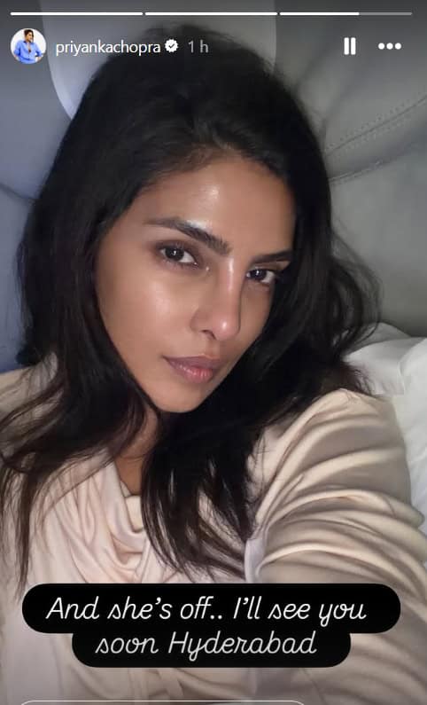 PeeCee took to the Stories section of her official Instagram handle and posted a radiant selfie of herself in a sans makeup look, along with the words, “And she’s off..I’ll see you soon, Hyderabad.”