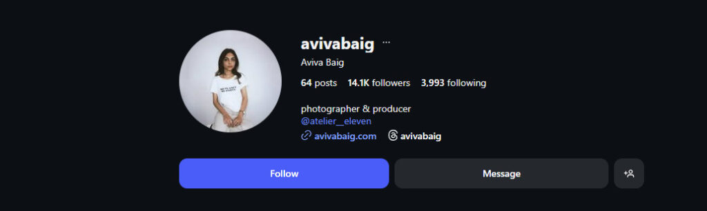 Aviva Baig’s Instagram profile and photos have been going viral online. She currently has around 13.8K followers on Instagram, and her bio describes her as a “photographer & producer.” Her feed offers glimpses of her artistic work and everyday moments captured through her lens.