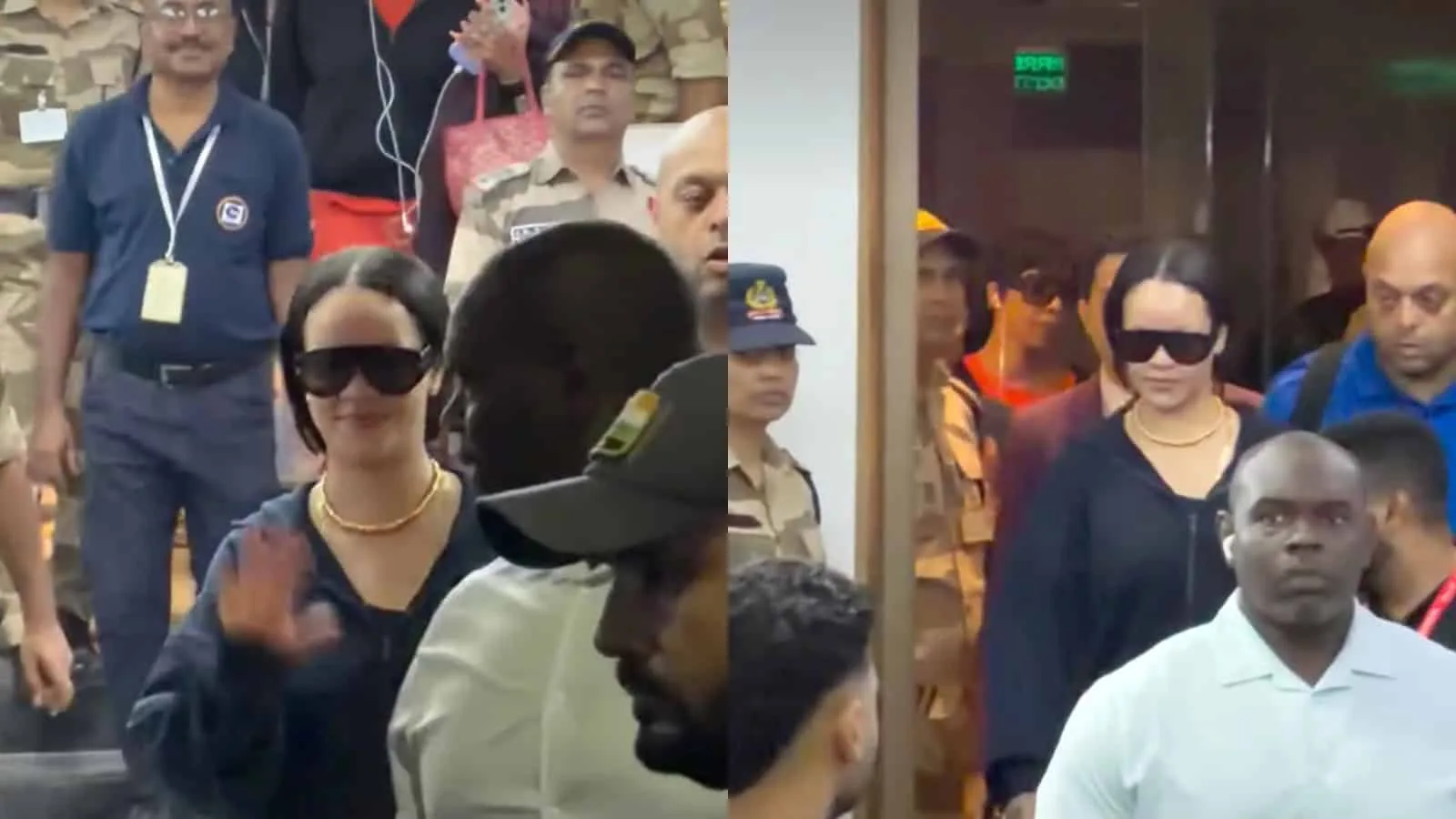 Rihanna was spotted in a stylish all-black outfit with dark sunglasses and bold gold jewellery. Even with heavy security around her, she looked relaxed and happy. As fans and photographers shouted “RiRi, RiRi,” she smiled, waved, and even blew flying kisses, making the moment even more special.