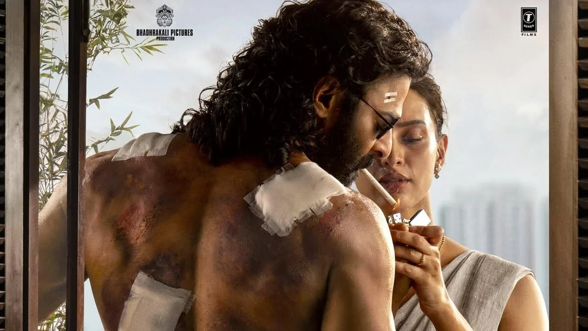 The poster features a wounded Prabhas standing by the window, while Triptii can be seen lighting his cigarette.