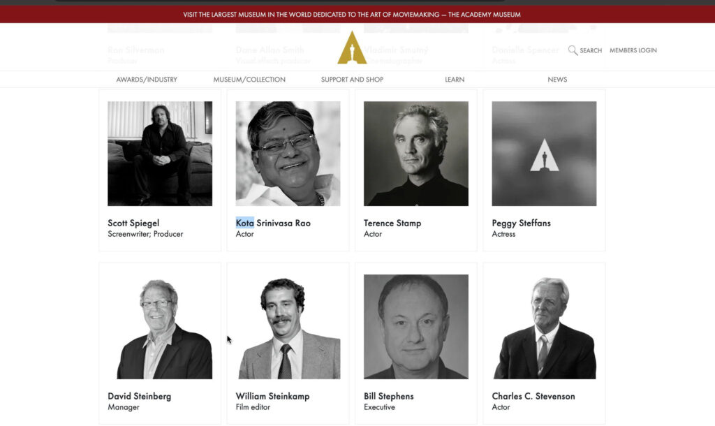 Kota Srinivasa Rao received special recognition during the “In Memoriam” segment. His photo and contributions were highlighted, marking a proud moment for Telugu cinema. Kota, who passed away on July 13, 2025, had a career spanning over 40 years with more than 700 films in Telugu, Tamil, Hindi, and Kannada. Known for his versatility as a comedian, villain, and character actor, he won nine Nandi Awards and the Padma Shri. His inclusion on the Oscars stage shows international recognition of his talent and legacy.