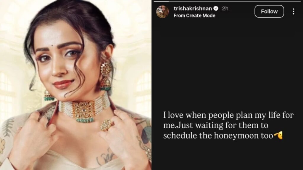 Trisha has often been vocal in shutting down personal rumours. In October 2025, she dismissed reports of her alleged marriage to a Chandigarh-based businessman by posting on Instagram Stories, “I love when people plan my life for me. Just waiting for them to plan the honeymoon too.”
